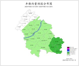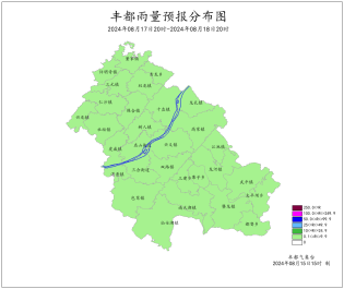 2024年8月14日16时至8月15日16时我县多云到晴,局地有分散阵雨。最大降雨量为14.8mm(三建蔡森坝)。名山镇(航道)、汤圆石危岩站、丰都站出现7-8级大风,极大风速18.8米/秒(名山镇(航道),14日16时),最低气温14.3~25.5℃,最高气温24.4~41.4℃。丰都国家基本站最低气温23.9℃,最高气温36.4℃。